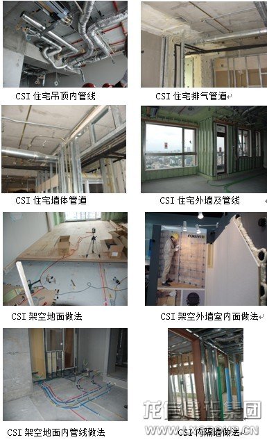 4、拼裝式CSI全裝修住宅:為了與預(yù)制裝配整體式鋼筋混凝土建筑的裝修配套,減少在預(yù)制階段管線預(yù)埋的工作量,同時方便日后裝修改造,我們與住建部住宅產(chǎn)業(yè)化促進中心等合作研發(fā)了拼裝式CSI全裝修住宅技術(shù)。CSI住宅外部結(jié)構(gòu)支撐體采用高耐久性的預(yù)制混凝土材料,延長了住宅的使用壽命。戶內(nèi)樓蓋采用整體無梁樓蓋形式設(shè)計。為便于改裝改修,盡量做到一個整體大空間,無小橫梁以及內(nèi)部結(jié)構(gòu)墻,由柱子圍繞,可使隔斷墻和各種管線自由分布;層高在現(xiàn)有室內(nèi)凈高的基礎(chǔ)上增加200mm—300mm作為架空地板層,各種管線鋪設(shè)在架空層內(nèi),相當(dāng)于每戶增加一個管道層,實現(xiàn)了同層排水;土建施工時廚房、衛(wèi)生間、內(nèi)隔墻不定位,住戶可以根據(jù)自己的需要隨意安放。