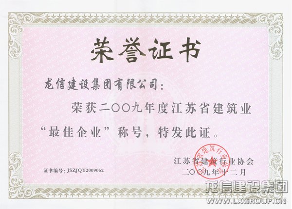 2009年度江蘇省建筑業(yè)質量管理先進單位