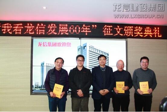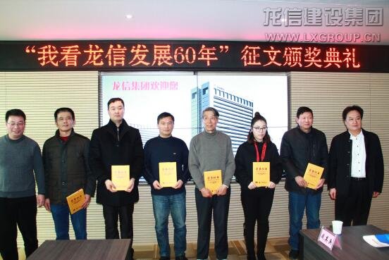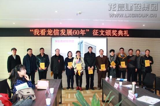 龍信集團(tuán)董事長陳祖新發(fā)表了熱情洋溢的講話,陳董首先向關(guān)心龍信發(fā)展的各界人士表示感謝,對本次征文比賽獲獎人員表示祝賀。向大家介紹了集團(tuán)發(fā)展歷程,龍信成立于1958年,是海門最早成立的建筑施工企業(yè),公司一直堅持以建筑為主業(yè),常年奮戰(zhàn)在全國各地,近年來參與家鄉(xiāng)建設(shè),為家鄉(xiāng)人民提供高品質(zhì)全裝修住宅和一流的服務(wù)。目前集團(tuán)四板塊一中心聯(lián)動發(fā)展,形成“建筑產(chǎn)業(yè)化、綠色建筑、全裝修成品住房、養(yǎng)老產(chǎn)業(yè)”四張王牌優(yōu)勢。面對激烈的市場環(huán)境,建筑企業(yè)需不斷創(chuàng)新,變革發(fā)展,未來通過上市進(jìn)一步規(guī)范企業(yè)管理,使得企業(yè)健康長久發(fā)展。陳董談到,龍信的發(fā)展還得益于優(yōu)秀文化的支撐,從創(chuàng)業(yè)之初的“老實做人、實在做事”的務(wù)實作風(fēng),到現(xiàn)在持續(xù)創(chuàng)新、追求高效、合作共贏,無不體現(xiàn)著龍信與時俱進(jìn)的作風(fēng)。未來,龍信將為實現(xiàn)百年企業(yè)努力奮斗。隨后,海門市委宣傳部副部長、海門日報社社長沈健生,總編范軍、副總陳松,龍信集團(tuán)董事長陳祖新、總經(jīng)理唐愛東、副總經(jīng)理何咸軍等為本次“我看龍信發(fā)展60年”征文比賽中榮獲一、二、三等獎的獲獎人員頒發(fā)獎金和證書并合影留念。獲獎代表上臺發(fā)表講話。他們紛紛表示與龍信有著不解之緣,多年來一直關(guān)注龍信的發(fā)展,通過這次征文活動,對龍信有了更為直觀的了解。獲獎代表共同祝愿龍信發(fā)展騰飛,期待實現(xiàn)百年龍信的宏偉目標(biāo)!最后,所有嘉賓在龍信大廈前合影留念。