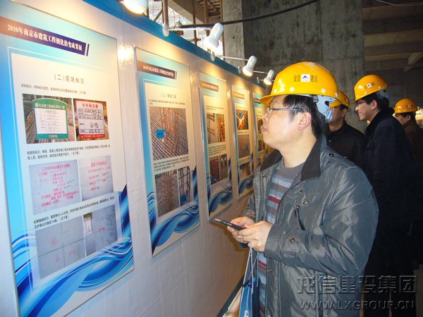 由江蘇省建設(shè)廳、南京市住建委和南京市質(zhì)監(jiān)站組織,2011年2月22日建設(shè)部吳慧娟司長及隨行、省建設(shè)廳徐副廳長、省各市縣建工局、安監(jiān)站、質(zhì)監(jiān)站領(lǐng)導(dǎo)300余人在南京市精品示范工程試點(diǎn)項(xiàng)目----龍信集團(tuán)仁恒G53公寓項(xiàng)目部進(jìn)行現(xiàn)場觀摩活動(dòng)。集團(tuán)公司董事長陳祖新、南京分公司經(jīng)理江建明、項(xiàng)目部陳揚(yáng)、朱福生、蔡春燕、葛玉林、徐向華、李雪平、張沖、朱永新等同志陪同、解說。