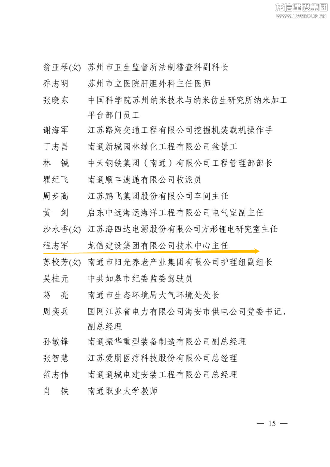 龍信建設(shè)集團(tuán)技術(shù)中心主任程志軍榮獲“江蘇省五一勞動獎(jiǎng)?wù)?rdquo;。
