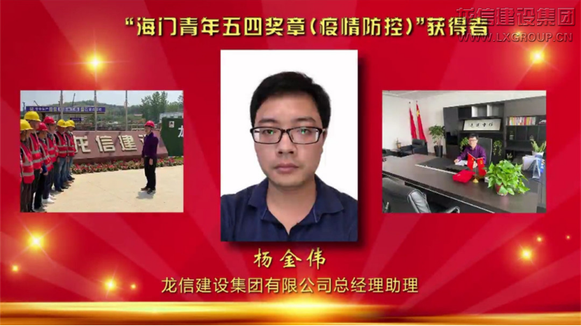 在五四青年節(jié)到來之際,共青團海門市委、海門市青年聯(lián)合會特向優(yōu)秀青年和集體頒發(fā)“海門青年五四獎章”。龍信建設集團有限公司青年志愿服務隊榮獲“海門青年五四獎章集體”,龍信建設集團有限公司總經(jīng)理助理楊金偉榮獲“海門青年五四獎章”(疫情防控)。4月30日,由海門市新時代文明實踐中心辦公室、共青團海門市委主辦,海門市融媒體中心承辦,龍信集團等單位共同贊助的“不懼風雨,奮勇前進”——海門市“五四”青年節(jié)線上文明實踐暨道德講堂總堂示范觀摩活動通過電視和網(wǎng)絡進行同步直播,活動現(xiàn)場進行表彰。