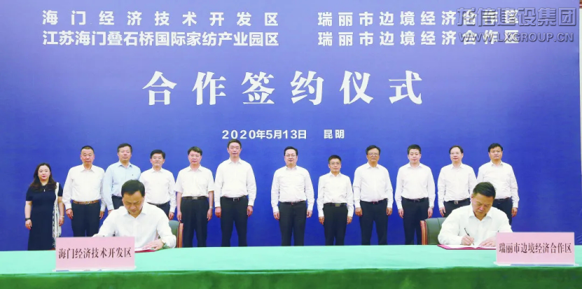 5月13日,海門經(jīng)濟技術(shù)開發(fā)區(qū)、疊石橋國際家紡產(chǎn)業(yè)園區(qū)與云南省瑞麗市邊境經(jīng)濟合作區(qū)合作簽約儀式在昆明舉行。云南省委常委、統(tǒng)戰(zhàn)部長、副省長張國華,海門市委書記陳勇,德宏州委書記、瑞麗試驗區(qū)黨工委書記、管委會主任趙剛,云南省商務(wù)廳廳長趙瑞君等共同見證簽約。龍信集團黨委書記、董事長陳祖新作為海門市黨政代表團企業(yè)家代表出席此次活動。
