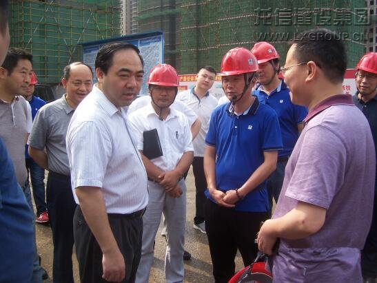 2018年05月19日上午9時株洲市委副書記、市長陽衛(wèi)國、市住建局長何安國、天元區(qū)委書記周建光等領(lǐng)導(dǎo)考察龍信集團(tuán)株洲湘水灣四期高層安全生產(chǎn)工作。市質(zhì)安處曾靖處長、鄧少云科長等有關(guān)領(lǐng)導(dǎo)陪同。