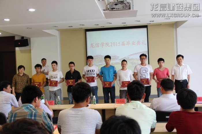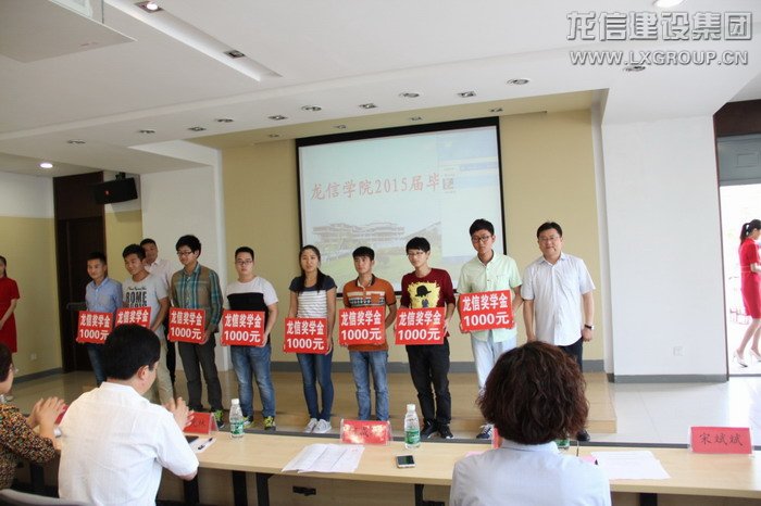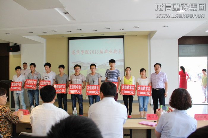 何總首先宣讀了龍信集團獎學(xué)金、助學(xué)金表彰文件,并為薛貴仁等10名龍信獎學(xué)金獲得者和陳坤等10名龍信助學(xué)金獲得者頒獎。吳書記和龍信卞總為畢業(yè)生代表頒發(fā)畢業(yè)證書。