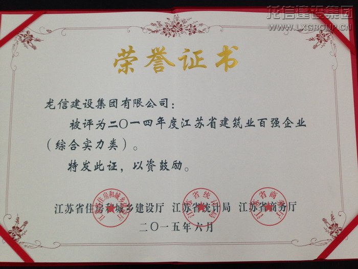 龍信集團獲2014年度全省建筑業(yè)“百強企業(yè)”綜合實力百強榜第六位