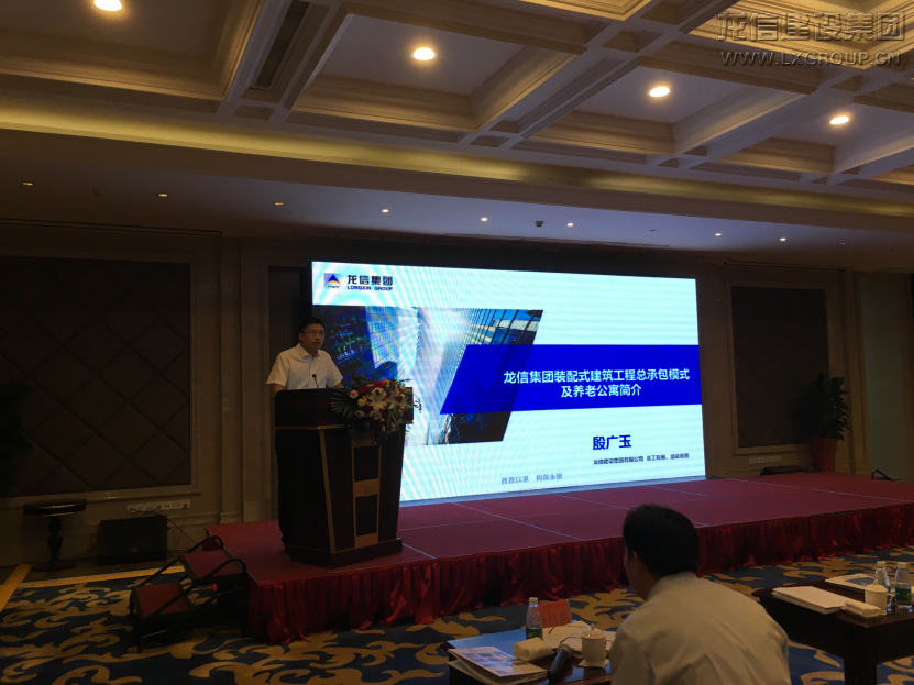 6月14日上午,會議由中國土木工程學(xué)會住宅工程指導(dǎo)工作委員會理事長張軍主持。郭允沖部長致辭并分析了國內(nèi)外裝配式建筑的現(xiàn)狀和未來發(fā)展方向。王華理事長對裝配式建筑的發(fā)展歷程和技術(shù)體系做了深入分析。龍信集團總工程師殷廣玉作了題為“龍信集團裝配式建筑與養(yǎng)老住宅介紹”的匯報,詳細(xì)介紹了龍信產(chǎn)業(yè)化發(fā)展歷程和技術(shù)優(yōu)勢,并就南通人才公寓項目和海門樂頤薈老年公寓項目為實例講述了龍信集團裝配式剪力墻及框架結(jié)構(gòu)設(shè)計、施工的先進性并介紹了龍信老年公寓讓老者“養(yǎng)、尊、處、優(yōu)”的社區(qū)養(yǎng)老運營模式。