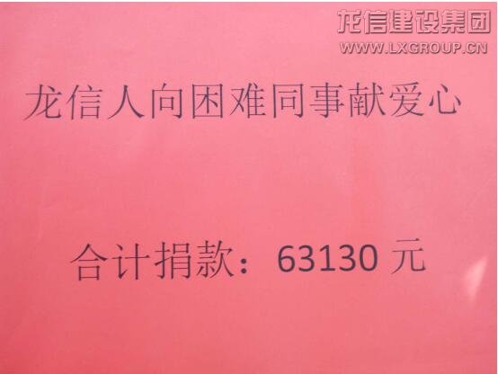 南京區(qū)域公司員工王二寶,2012年進入龍信從事鋼筋翻樣工作,該同志吃苦耐勞,對工作認真負責,深受項目部領導好評。王二寶家住江蘇泗陽,其妻在家務農,兩個孩子均上學讀書,其家庭主要靠王二寶工資來養(yǎng)家糊口,日子雖然過得清苦,但也其樂融融。天有不測風云,人有旦夕禍福,2017年底,其妻被檢查出乳腺癌,手術加后期6次化療等費用預計需25萬元左右。面對突如其來的家庭變故,王二寶不得不舉債為妻治病,家庭條件也因病致貧。