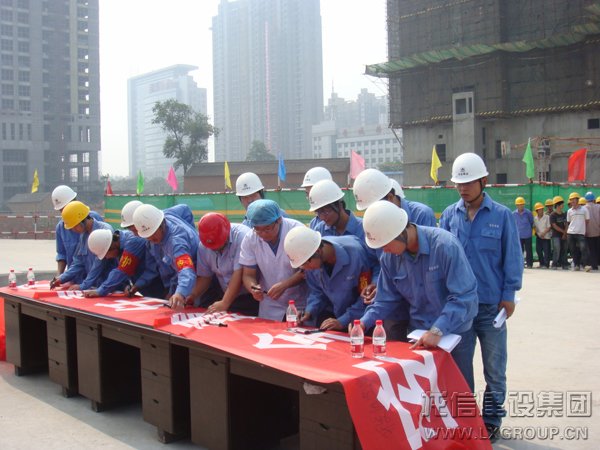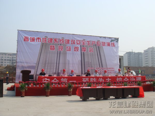 2011年6月29日上午,晉城市建筑施工安全生產(chǎn)應(yīng)急演練在我龍信建設(shè)集團金城·蘭園項目部舉行!山西省安監(jiān)站副站長宮守河、晉城市經(jīng)濟開發(fā)區(qū)管委會主任原光輝、晉城市建筑安全監(jiān)督管理站站長李乾坤等出席此次的觀摩會。項目演練圍繞高空墜落事故的救援救護、觸電事故的救援救護、火災(zāi)事故的救援救護三項預(yù)案展開,主要檢查預(yù)案與實踐的差距,普及教育安全常識和救護技能。省市各級領(lǐng)導(dǎo)及項目部管理人員分別在安全生產(chǎn)橫幅上簽名,以承諾個人安全責(zé)任!