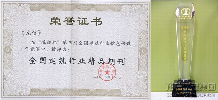 11月12日,全國建筑行業(yè)信息傳媒工作經(jīng)驗交流會在浙江嘉興召開,會上宣讀《關于公布“鴻翔杯”第三屆全國建筑行業(yè)信息傳媒工作競賽優(yōu)勝者名單的決定》。由我集團主辦的《龍信》雜志被評為精品期刊,龍信建設集團有限公司網(wǎng)站被評為精品網(wǎng)站。