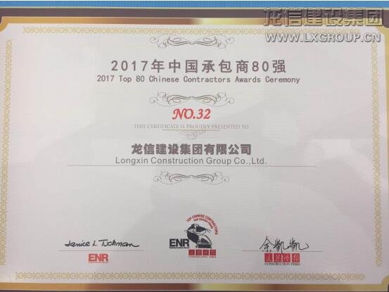 11月30日,由美國《工程新聞紀(jì)錄》(ENR)和中國《建筑時(shí)報(bào)》共同主辦的2017“中國承包商80強(qiáng)和工程設(shè)計(jì)企業(yè)60強(qiáng)”頒獎典禮在蘇州隆重舉行。龍信集團(tuán)榮列“中國承包商80強(qiáng)”第32位,這已是我集團(tuán)連續(xù)第9年入圍該榜單,充分展現(xiàn)了集團(tuán)優(yōu)秀的品牌形象和較強(qiáng)的綜合實(shí)力。