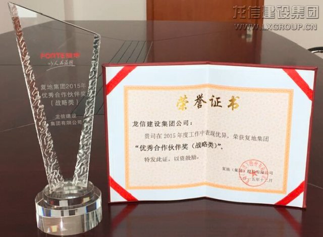 2015年12月7日,復(fù)地集團(tuán)在上海浦東星河灣酒店舉行2015年復(fù)地集團(tuán)合作商大會(huì)。龍信集團(tuán)二分公司二部施建昌經(jīng)理應(yīng)邀參加大會(huì),并榮獲“優(yōu)秀合作伙伴獎(jiǎng)(戰(zhàn)略類(lèi))”。